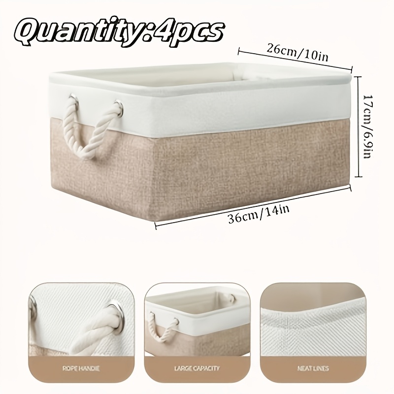 4pcs Large Capacity Foldable Open-Top Storage Box Fabric with Handle White Beige Stylish Durable for Bedroom Underbed Clothes Storage Box Premium Mother'S Day Birthday Gift