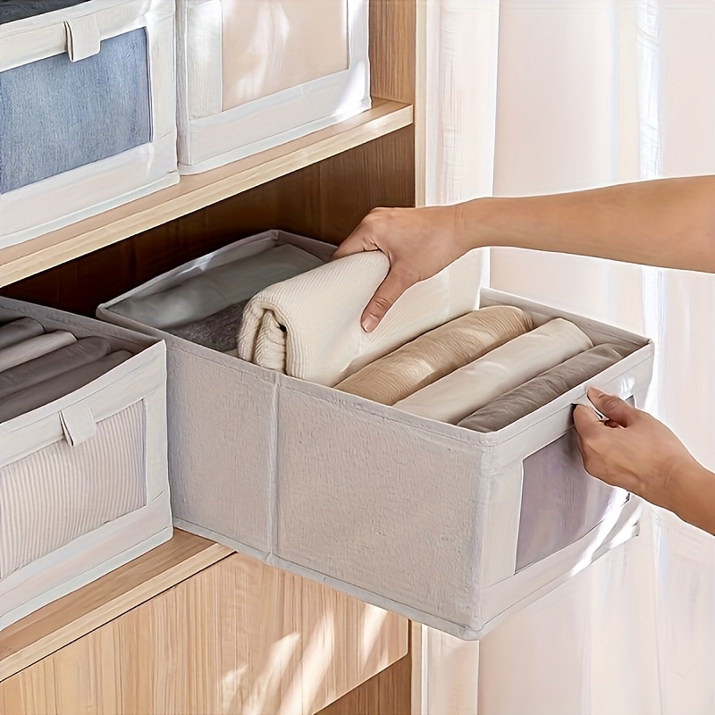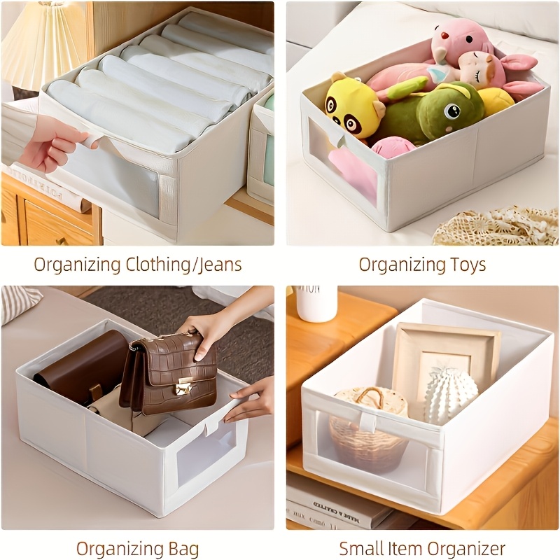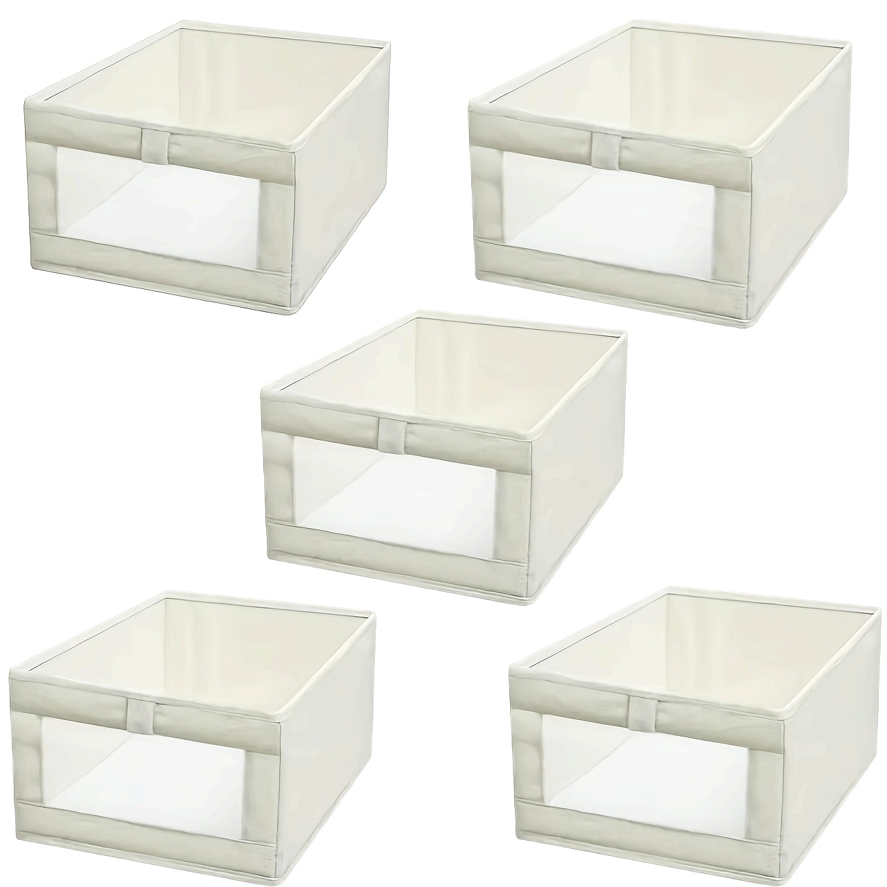 5pcs Beige Wardrobe Organizer Set- Large Foldable Storage Box with Window, Suitable for Clothes, Jeans- Multifunctional Rectangular Boxes, Home Organization, Laundry Basket, Under-Bed Storage